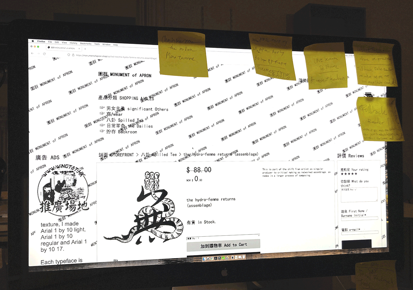Monument of Apron, web design for the collective 'Display Distribute', web development by Marie MadonnaCédric and Rossignol-Brunet